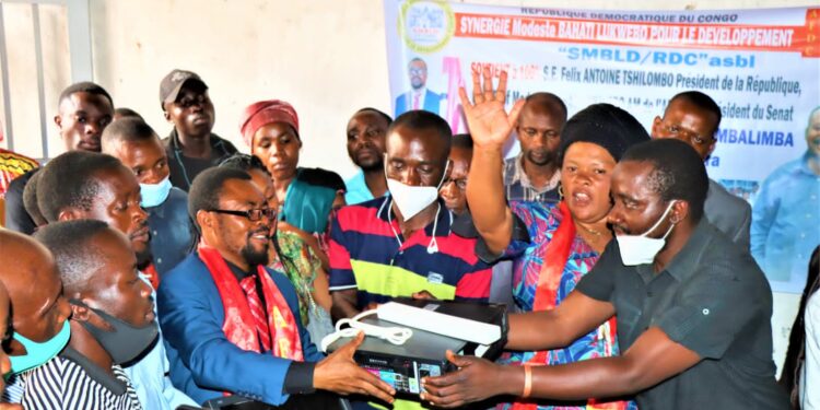 Le député national Luc Mulimbalimba Masururu à travers son organisation Mission en Soins de Santé et Développement, MHCD, vient de faire un don à la Synergie Modeste Bahati Lukwebo pour le Développement (SMBLD) ce mardi 25 janvier 2022 à Bukavu dans la province du Sud-Kivu. Ce don est constitué de 4 ordinateurs de bureau, de plus de 3.000 masques de protection contre la pandémie de COVID-19 et des kits hygiéniques pour les femmes et les jeunes filles.